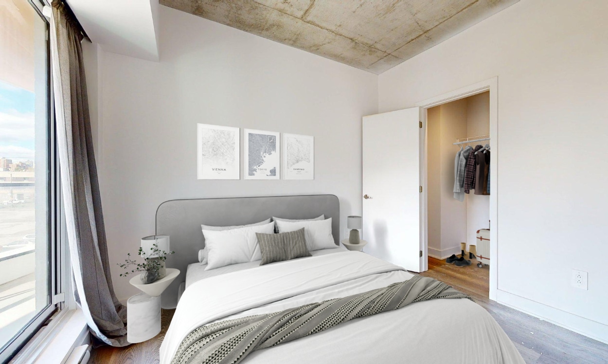 Réveillez-vous baigné de lumière naturelle dans votre chambre où le soleil de Griffintown dessine votre nouvelle routine matinale.